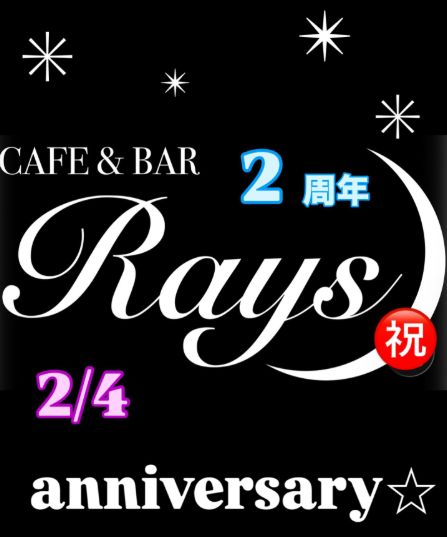 おかげさまでRaysは皆様、お客様に支えられ、2/4で2周年を迎える事となりました。深く感謝するとともにこれからも美味しさと居心地良さをご提供出来るよう努めて参ります。スタッフ一同心よりお待ちしております。